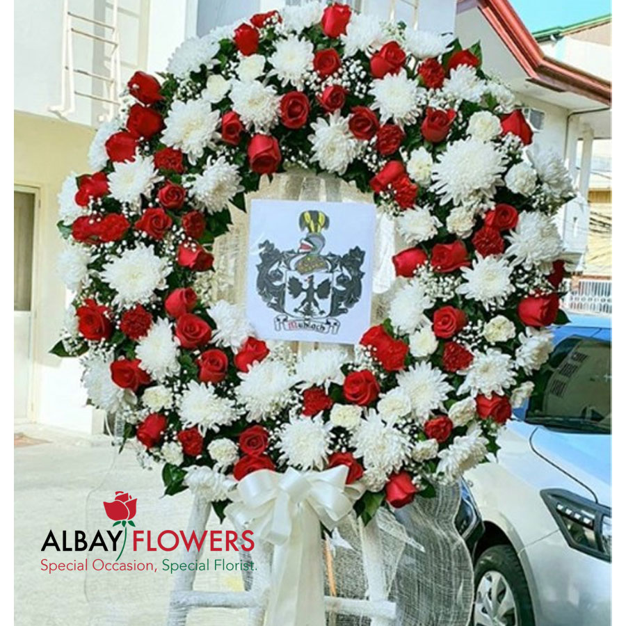 Crafted from the freshest roses and wonder white, this striking funeral wreath will help you express your deep sympathy to the one you love.