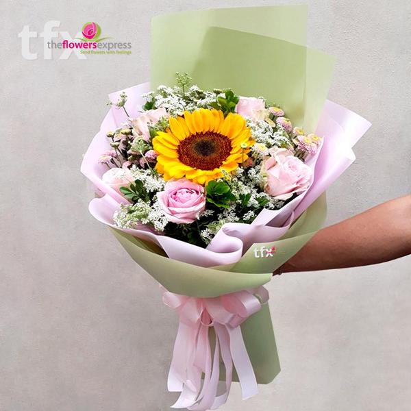 It is a combination of imported pink roses with sunflower in the middle.